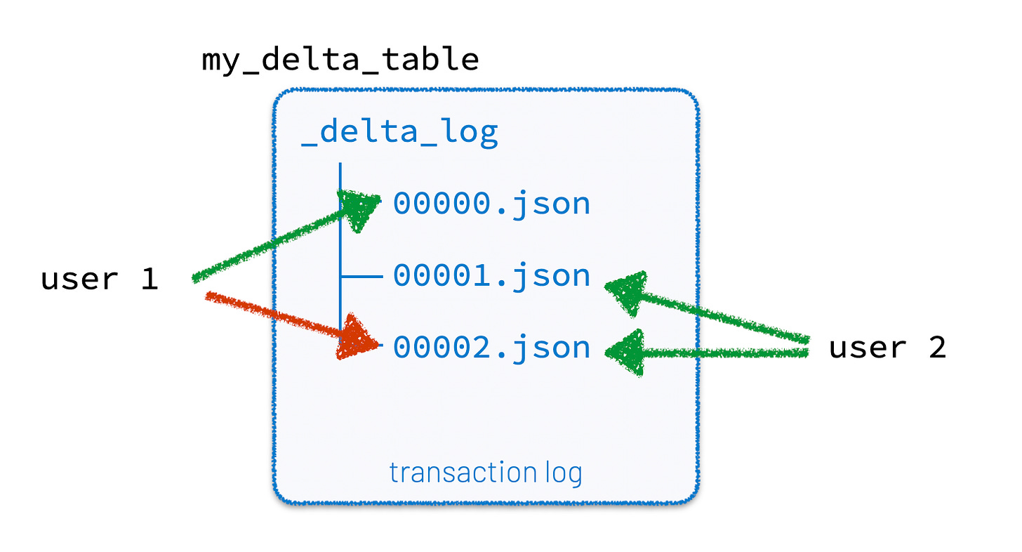 To support concurrent writes, Delta often uses a lightweight external lock (commonly DynamoDB-based) to coordinate exclusive access to the log files during commit to deal with race condition of two writes trying to create the same log file (with same version number).