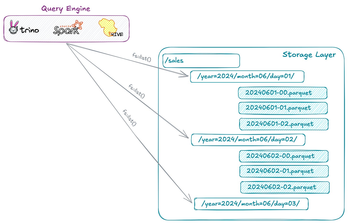 Hive table format was a directory-oriented format that relied heavily on directory and file listing operations during the query planning phase.
